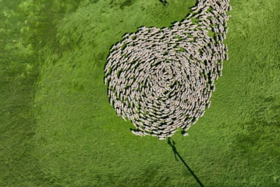 Gökyüzünden çekilen bu eşsiz görüntüler, doğayla iç içe hayvancılığın sanatsal bir anlatıma dönüştüğünü gözler önüne serdi. 20 bin küçükbaş hayvanın meralarda otlatıldığı işletmede, çobanlar tarafından yönlendirilen sürünün senkronize hareketi, izleyenleri adeta mest etti. Çobanların yönlendirmesiyle oluşan bu dairesel hareketin gökyüzünden görüntüsü, adeta bir dans gösterisini andırdı.