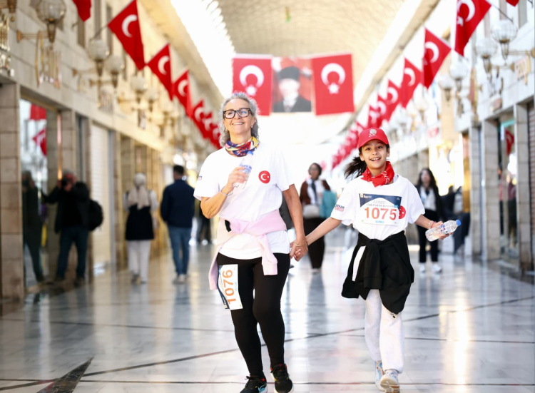 Bursa’nın simgesel noktaları arasında koştu. Tarihi çarşılar, dar sokaklar ve kentin