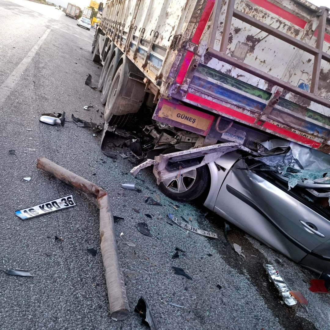 Bursa'nın Karacabey ilçesinde otomobil tıra çarptı, 4 kişi öldü 2 kişi yaralandı