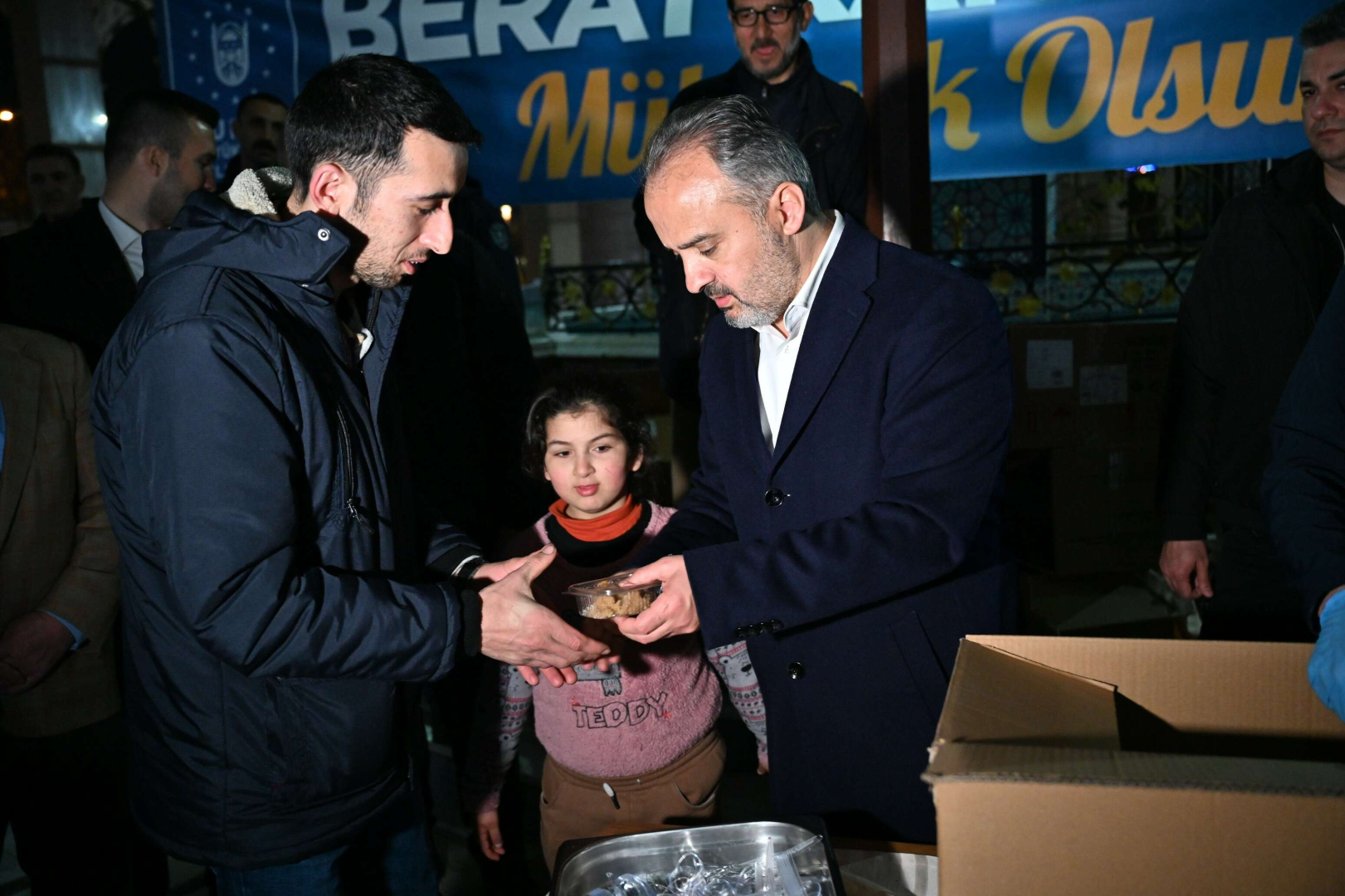 Ramazan ayının habercisi olan Berat Kandilinde, Bursalılar selatin camilerine akın etti. Bursa Büyükşehir Belediye Başkanı Alinur Aktaş, Mihraplı Camii’nde bir araya geldiği vatandaşlara helva ikram etti.