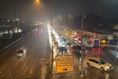 Kilometrelerce oluşan araç konvoyuna yağmurda eklenince vatandaşlar büyük stres yaşadı.