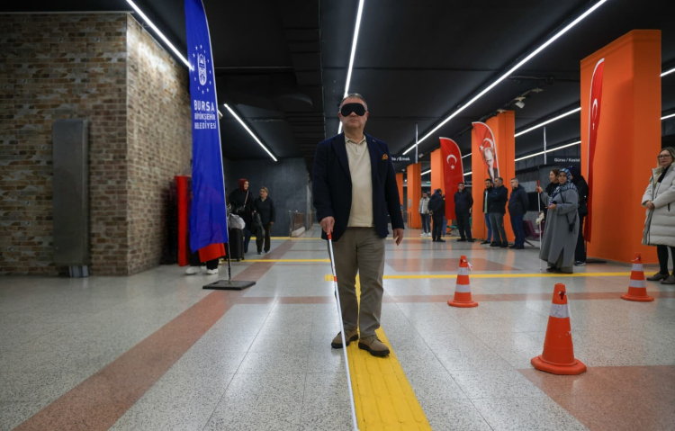 Bursa Büyükşehir Belediyesi tarafından 3 Aralık Dünya Engelliler Günü dolayısıyla, özel bireylerin yaşadığı problemlere dikkat çekmek ve toplumsal farkındalığı artırmak amacıyla anlamlı bir etkinliğe daha imza atıldı. Bursa Büyükşehir Belediyesi Gençlik Kulübü ve Engelli Hizmetleri Şube Müdürlüğü'nün koordinasyonunda, BURULAŞ’ın desteğiyle BursaRay Merinos İstasyonu’nda empati parkuru kuruldu.