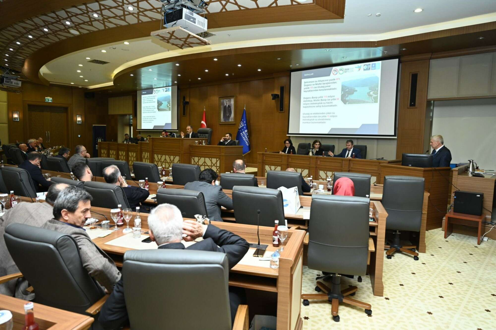 BUSKİ Genel Müdürü Güngör Gülenç de meclis üyelerine BUSKİ’nin çalışmaları hakkında bir sunum yaptı ve Büyükşehir Belediyesi’nin vizyonuyla çalışmalarına büyük bir azim ve şevkle devam ettiklerini vurguladı.