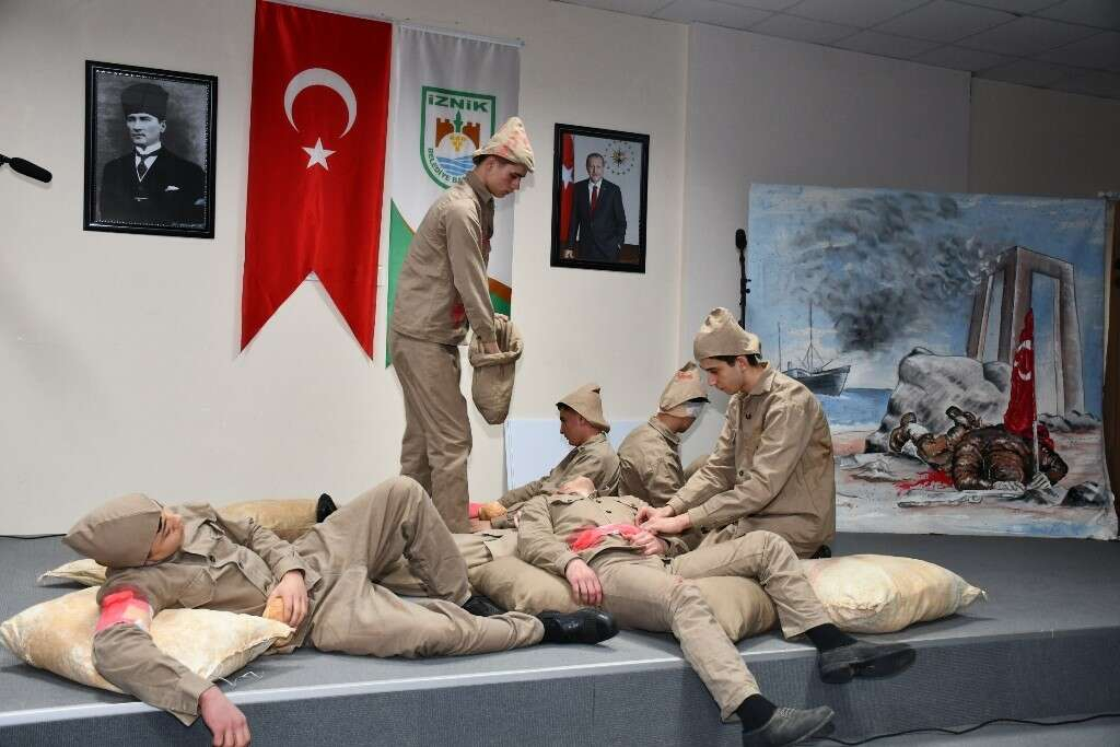 İznik Belediyesi Şehit Piyade Komando Çavuş Fehmi Barcın Kültür Merkezi’nde gerçekleşen ilk program Şehit Sedat Pelit Anadolu Lisesi tarafından hazırlandı. Saygı Duruşu ve İstiklal Marşı’nın okunmasıyla başlayan programda duygu dolu anlar yaşandı. Öğrencilerin İznikli Şehitlerin resimlerini çıkardıkları anlarda katılanlar gözyaşlarını tutamadı.