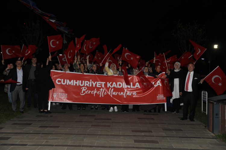 Bursa Büyükşehir Belediyesi, 29 Ekim Cumhuriyet Bayramı’nın 102. yılı etkinlikleri kapsamında ‘Cumhuriyet Kadınlarıyla Bereketli Yarınlara’ temalı bir program düzenledi. Kırsal Hizmetler Dairesi Başkanlığı’nın ev sahipliğinde, Gökdere Millet Bahçesi’ndeki Bursa Tarım Ürünleri Tanıtım ve Eğitim Merkezi’ndeki programa, Büyükşehir Belediyesi Genel Sekreter Yardımcısı Mehmet Yıldız, Büyükşehir Belediyesi yöneticileri, kadın üreticiler, kadın kooperatiflerinin ve kadın derneklerinin temsilcileri katıldı. Bando eşliğinde Cumhuriyet kortej yürüyüşünün yapıldığı program, saygı duruşu ve İstiklal Marşı’nın okunmasıyla başladı.