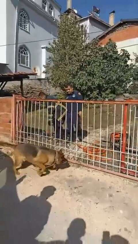 Bursa’da bir evin bahçesindeki demir kapıya sıkışan köpeği, sahibinin ihbarı üzerine itfaiye ekipleri çıkardı. O anlar kameraya yansıdı.