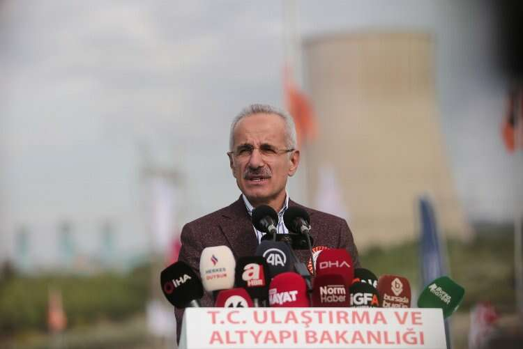 Ankara-Bursa Yüksek Hızlı Tren (YHT) projesinde gelinen durumla ilgili de bilgi veren Bakan Uraloğlu, inşaattaki ilerlemenin yüzde 80 seviyesine ulaştıklarını dile getirerek, “Buraya gelmeden önce Ankara-Bursa Hızlı Tren Hattı Şantiyemizde incelemelerde bulunduk ve projede gelinen son aşamaya dair çalışma arkadaşlarımızdan bilgi aldık. Ankara-Bursa Hızlı Tren Hattımızı Ankara-İstanbul YHT hattına bağlantılı olarak saatte 200 kilometre hıza uygun çift hatlı, elektrikli ve sinyalli hızlı tren hattı inşa ediyoruz. 56 kilometre uzunluğundaki Bursa - Yenişehir kesimi, 95 kilometre uzunluğundaki Bandırma-Bursa ve 50 kilometrelik Yenişehir-Osmaneli kesimleri olmak üzere toplam 201 kilometrelik hatta altyapı ve üstyapı çalışmalarına eş zamanlı olarak devam ediyoruz. Proje kapsamında; 7 istasyon, 21 kilometre uzunluğunda 18 adet tünel, 3,9 kilometre 28 adet demiryolu köprüsü, 3,7 kilometre 4 adet viyadük ve 66 adet altgeçit inşa edeceğiz. Projemiz tamamlandığında hem Ankara-Bursa, hem de Bursa-İstanbul arası seyahat süresi 2 saat 15 dakika olacak. Bu yıl sonu itibariyle Osmaneli-Yenişehir kesimindeki toplam 14 bin metre uzunluğundaki 10 tünelin daha kazı çalışmalarını bitirmeyi hedefliyoruz. Viyadük, menfez, köprü, altgeçit ve üstgeçitler gibi sanat yapılarının yapım çalışmalarına da aralıksız devam ediyoruz. Bu işlerimizin de ilerleme seviyesi yüzde 80’e ulaştı” dedi.
