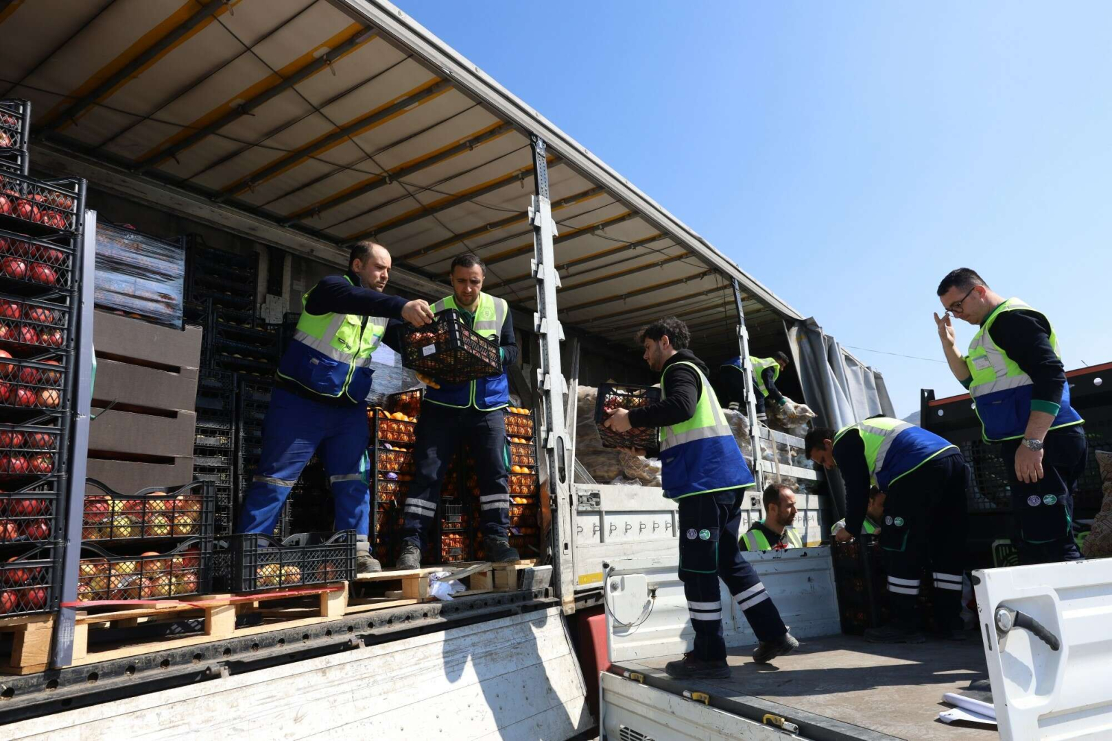 Bursa Büyükşehir Belediyesi’nin Hatay’da deprem yaralarını sarma çalışmalarına toplam 81 personelle destek veren Tarım Peyzaj A.Ş., Bursa’dan getirdiği meyve ve sebzeleri düzenli olarak afetzedelere dağıtıyor. Bugüne kadar 150 ton meyve ve sebzenin dağıtımını gerçekleştiren Tarım Peyzaj A.Ş., önceki gün gelen 18 ton patates ile kışlık meyveyi de ‘çadır kentlerin bulunduğu alanda’ ihtiyaç sahiplerine ulaştırdı.