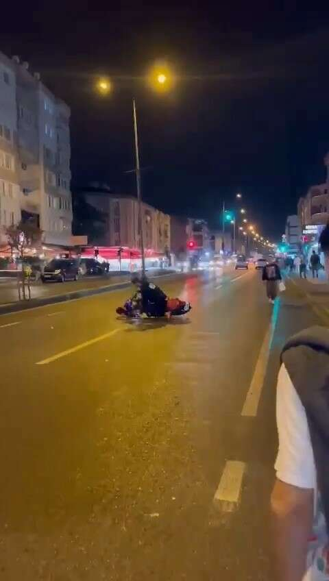 Bursa’da motosikletiyle drift atmak isteyen bir sürücü yan yattı. "Kazanın geliyorum" dediği anlar ise kameraya yansıdı.