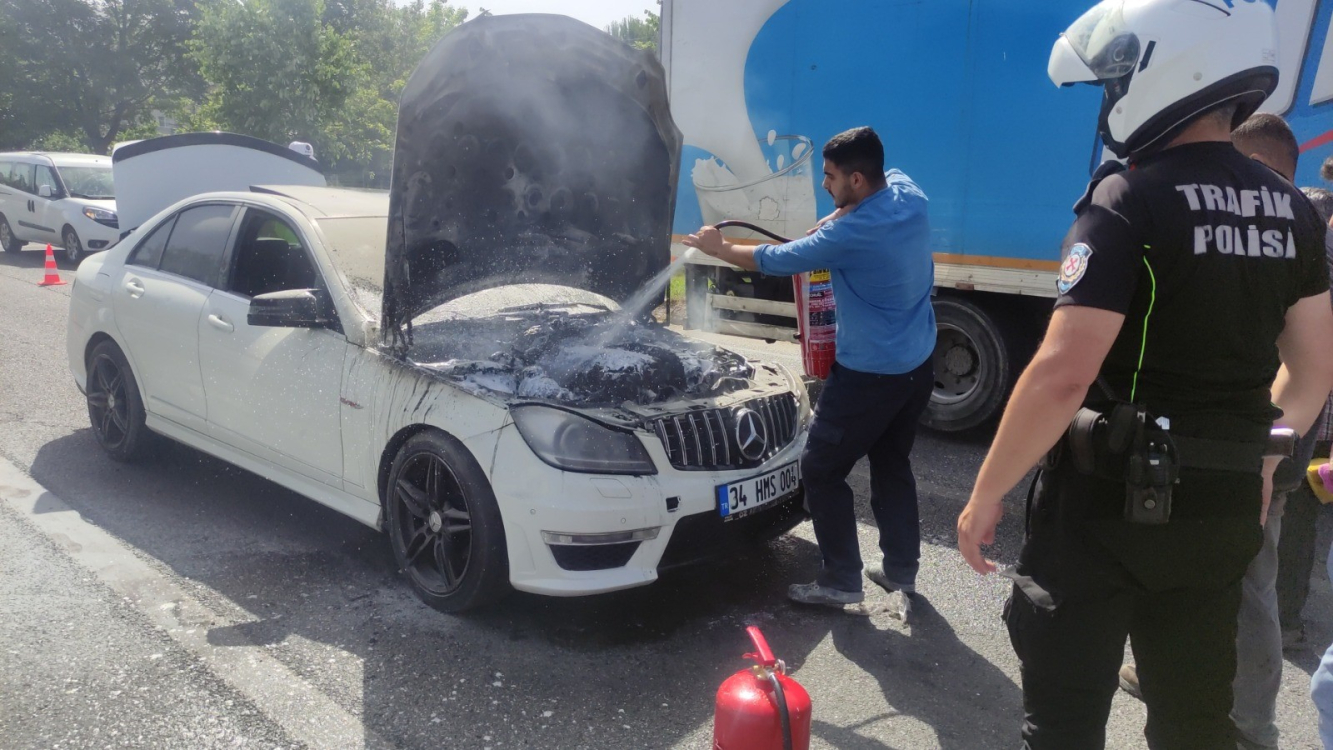 Seyir halinde olan lüks otomobilin motor bölümünden dumanlar yükselmeye başladı. Araçtan dumanlar çıktığını gören sürücü, trafik lambalarında otomobilden indi. Çevrede bulunan vatandaşlar yangın tüpleri ile müdahale etti. İhbar üzerine olay yerine itfaiye ekipleri sevk edildi.