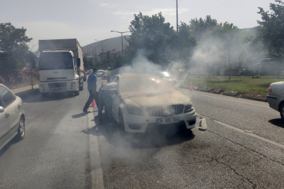 Bursa’nın Orhangazi ilçesinde seyir halinde olan Mercedes marka lüks bir otomobil, motor bölümünden alev aldı. Çevrede bulunan vatandaşlar, yangın tüpleri ile müdahale etti. Araç sahibinin otomobile Bursa’da elektrik arızasından dolayı 45 bin TL masraf yaptığı belirlendi.