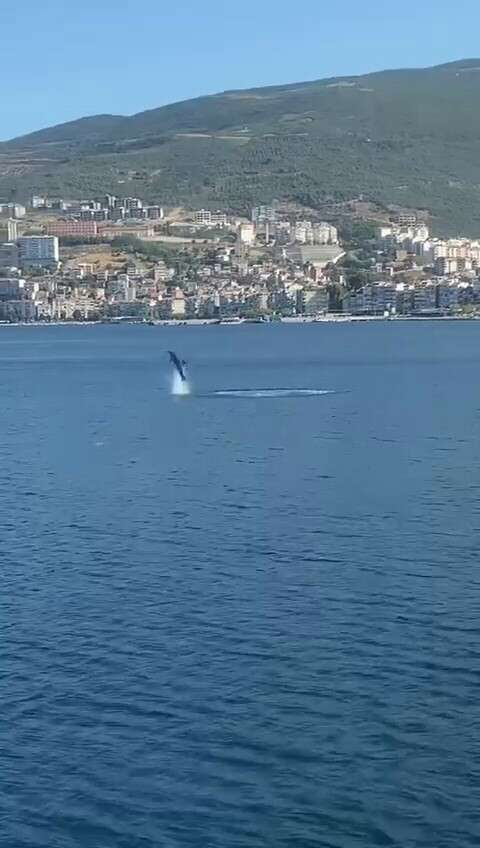 Bursa'nın Gemlik ilçesinde yunus balıkları denizde adeta gösteri yaptı.
