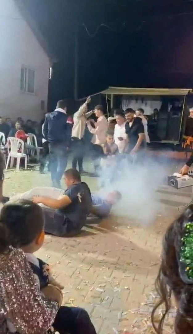 Olay Bursa'nın İnegöl ilçesi Kurşunlu mahallesinde meydana geldi. Damadın arkadaşları, beraber çiftetelli oynadıktan sonra çalınan yabancı müzikte adeta farklı bir kareografi yaptılar. Yere yatarak dans eden gençler, dikkatleri üzerlerine çekti.