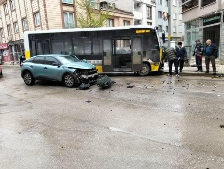 Kaza, saat 09.00 sıralarında Osmaniye Mahallesi Altay Caddesi üzerinde meydana geldi. Erdinç K.(33) yönetimindeki 16 M 06101 plakalı özel halk otobüsüne, Gaziler Sokaktan çıkan sürücü Dilek T.(27) yönetimindeki 16 ASH 563 plakalı Citroen otomobil yandan çarptı.