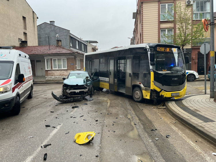 Halk otobüsü ile ot otomobil çarpıştı: 3 yaralı