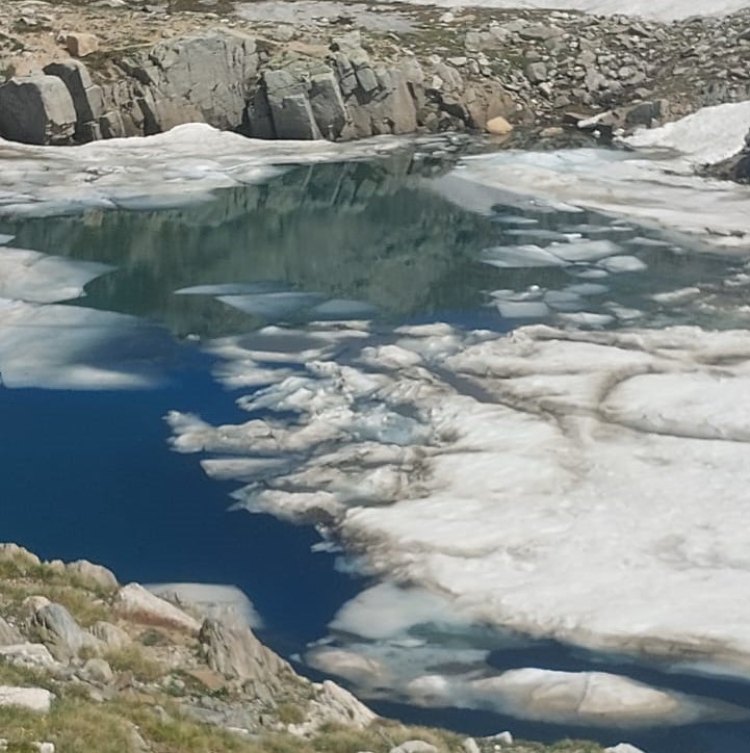 Haziran ayında Uludağ'da buzla kaplı gölde yüzdüler