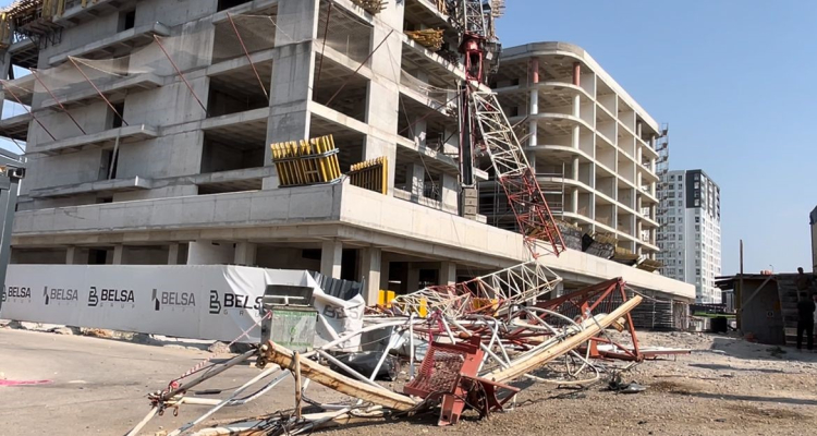 İnşaat alanında vinç devrildi, operatör mahsur kaldı