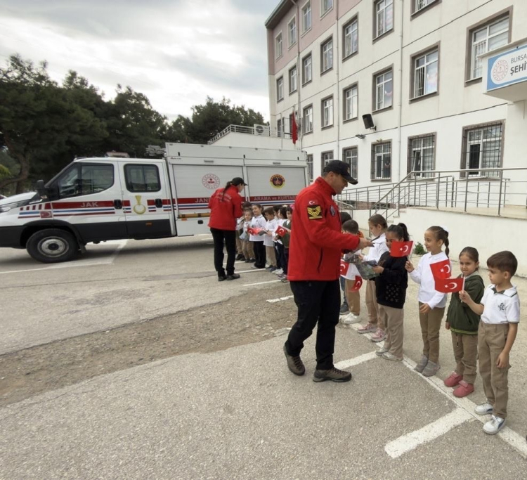 Bursa İl Jandarma Komutanlığı’na bağlı Jandarma Arama Kurtarma (JAK) timleri, öğrencilere yönelik farkındalık eğitimleri kapsamında iki ayrı okulda bilgilendirme yaptı.