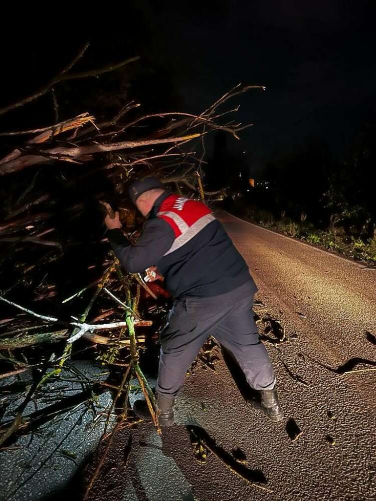 Bursa il genelinde akşam saatlerinden itibaren etkili olan lodos nedeniyle bazı bölgelerde ağaç devrilmesi, çatıların uçması, konteyner devrilmesi gibi olaylarda Bursa İl Jandarma Komutanlığı asayiş ve trafik ekipleri gece boyunca belediye ve AFAD ekipleriyle koordineli bir şekilde çalıştı. Yolu kapatan ağaçları kaldırarak trafiğe açan ekipler, çatısı uçan vatandaşlara yardım etti, konteyner devrilmesi sonucu konteyner içerisinde mahsur kalan bir kişinin de bulunduğu yerden çıkarılarak hastaneye sevkini sağladı.