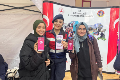 Bursa İl Jandarma Komutanlığı ekipleri, Mudanya'daki Kariyer Tanıtım Günü'nde 630 kadın ve kız öğrenciye KADES uygulaması hakkında bilgi verirken, 480 erkek öğrenciye de 'Kadına el kalkamaz' mottosu ile tanıtım ve bilgilendirme broşürü dağıttı.