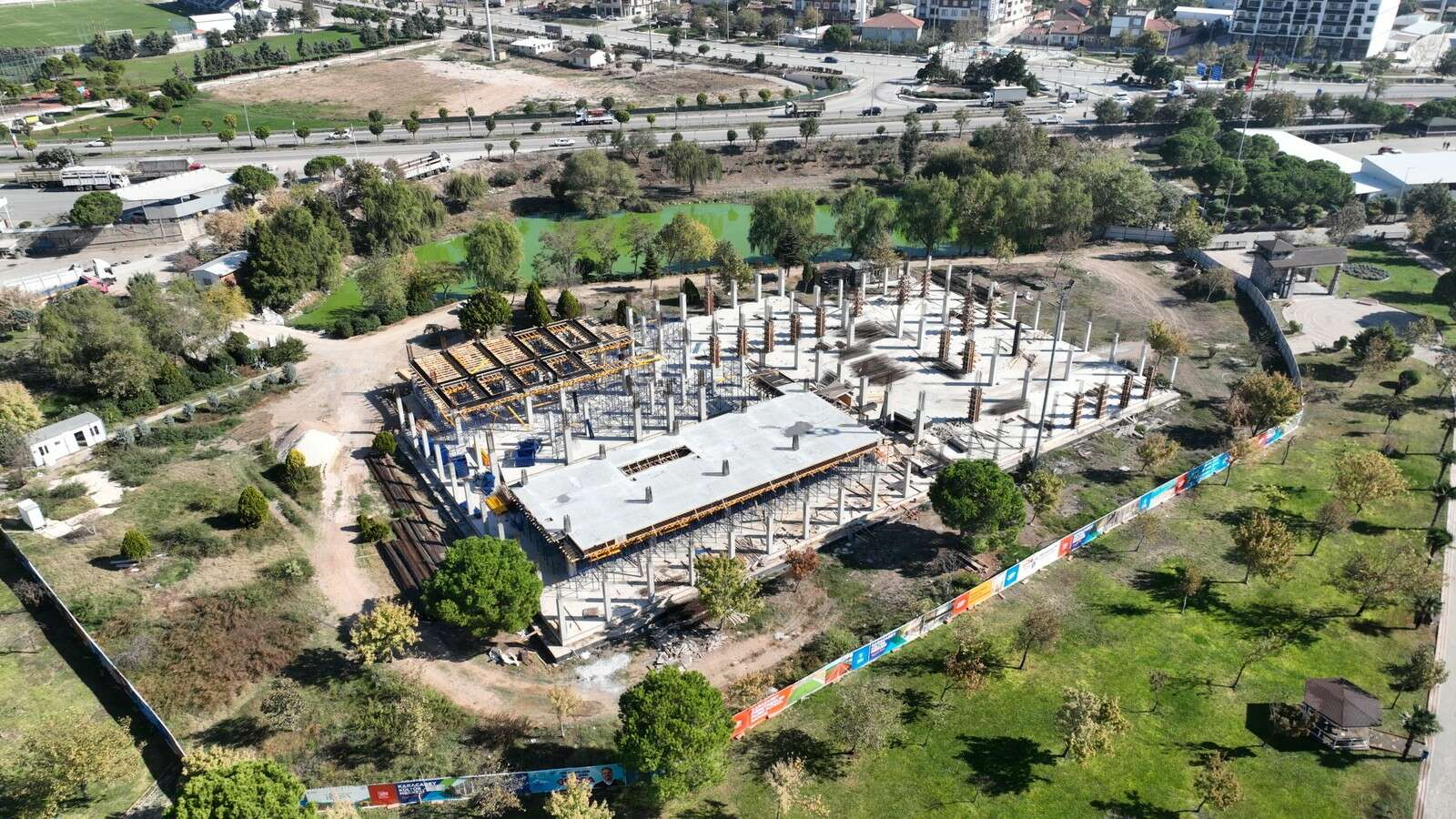 Ulaşımdan altyapıya, spordan tarihi ve kültürel mirasa kadar her alanda önemli yatırımları hayata geçiren Bursa Büyükşehir Belediyesi, 17 ilçede yaşam kalitesini yükseltecek projeleri bir bir devreye alıyor. Bu projeler çerçevesinde ele alınan ve yıllardır Karacabey halkı tarafından özlemle beklenen Kültür Merkezi’nin temeli de 2019 yılında atılmış ancak pandemi süreciyle birlikte inşaat durma noktasına gelmişti. Büyükşehir Belediyesi, ilçe girişindeki Atatürk Kültür Parkı’nda konuşlandırılan kültür merkezi inşaatında çalışmalara hız verdi. Farklı büyüklüklerde 4 salon, düğün salonu, kütüphane, fuaye alanı, çok amaçlı salon, iki adet sinema salonu, idari birim ofisleri ve vatandaşların ihtiyaçlarını karşılayabilecekleri sosyal donatıların bulunacağı merkezdeki fiziki gerçekleşme yüzde 40’lara ulaştı.