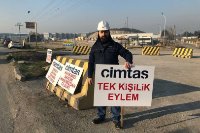 Bursa'nın Gemlik İlçesi'ndeki Serbest Bölge'de bulunan Çimtaş fabrikasında 10 yıldır kaynak işçisi olarak çalışan Göksel Kaya, haksız ve hukuksuz yere işten çıkartıldığını iddia ederek tek başına eylem yapıyor.