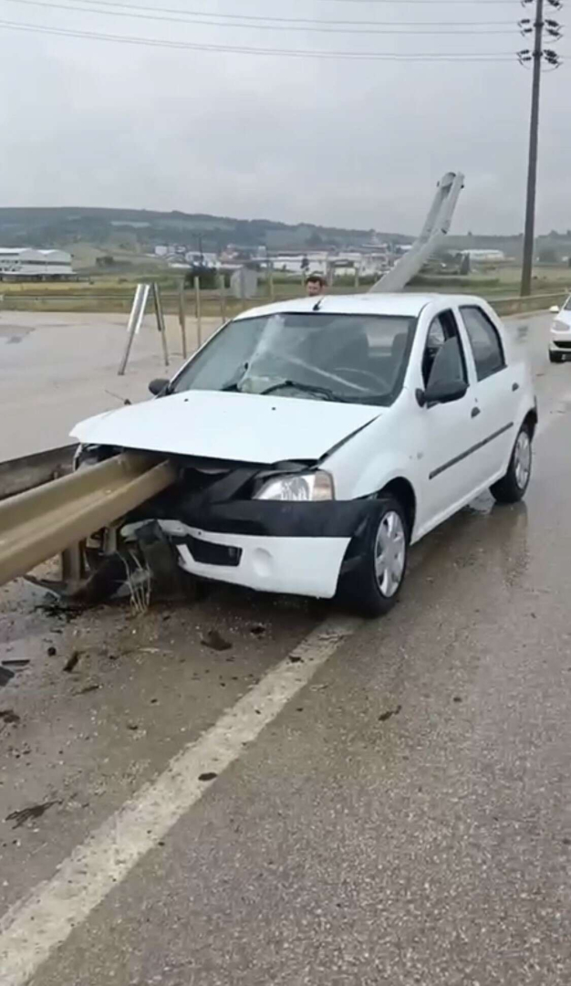Bursa’da yağışlı havanın etkisiyle kontrolden çıkan otomobil bariyerlere ok gibi saplandı. Kaza da şans eseri kimse zarar görmedi.