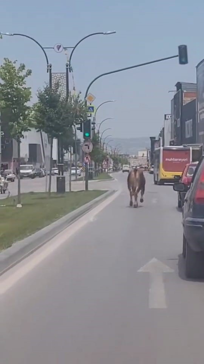 Mahmudiye Mahallesi Ertuğrulgazi Caddesi üzerinde gezen büyükbaş hayvan, sahibinin elinden kaçtı. Firar eden kurbanlığın peşine düşen sahibi, büyükbaş hayvanı uzun süre kovaladı. Araçla önü kesilen kurban kaçmaya devam etti. O anlar amatör kameraya saniye saniye yansıdı.