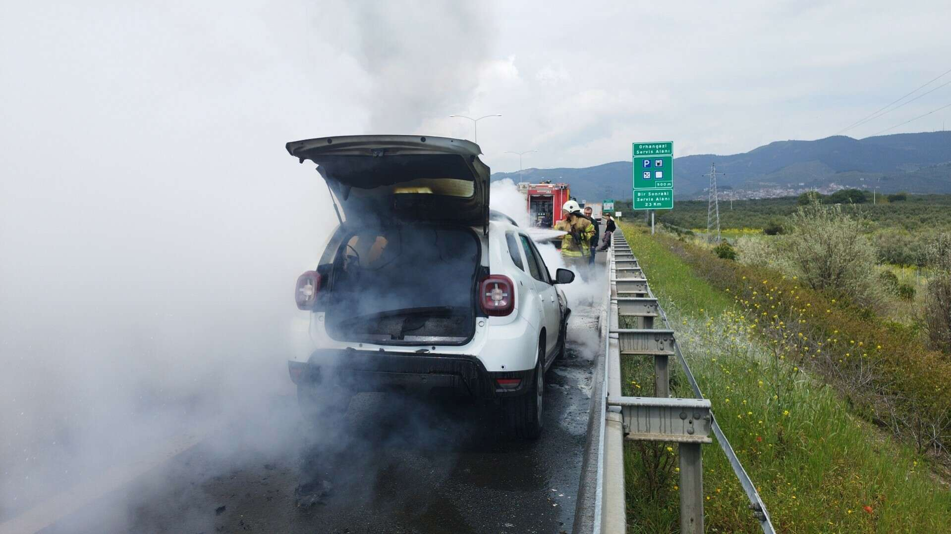 Olay, saat 13.30 sıralarında Gebze-Orhangazi-İzmir Otoyolu, Orhangazi Kavşağı yakınlarında meydana geldi. Alınan bilgilere göre, Bader Salah Faleh Albader Al Saadoun (33) isimli Kuveyt uyruklu bir şahsın kullandığı 07 AEE 138 plakalı otomobil, Gebze-Orhangazi-İzmir Otoyolu, İstanbul istikametine seyir halindeyken otomobilin motor bölümünden dumanlar çıkmaya başladı. Sürücüsünün yol kenarına çektiği araçta bulunan ve sürücü, eşi ve 2 çocuğu araçtan inerek uzaklaştı.