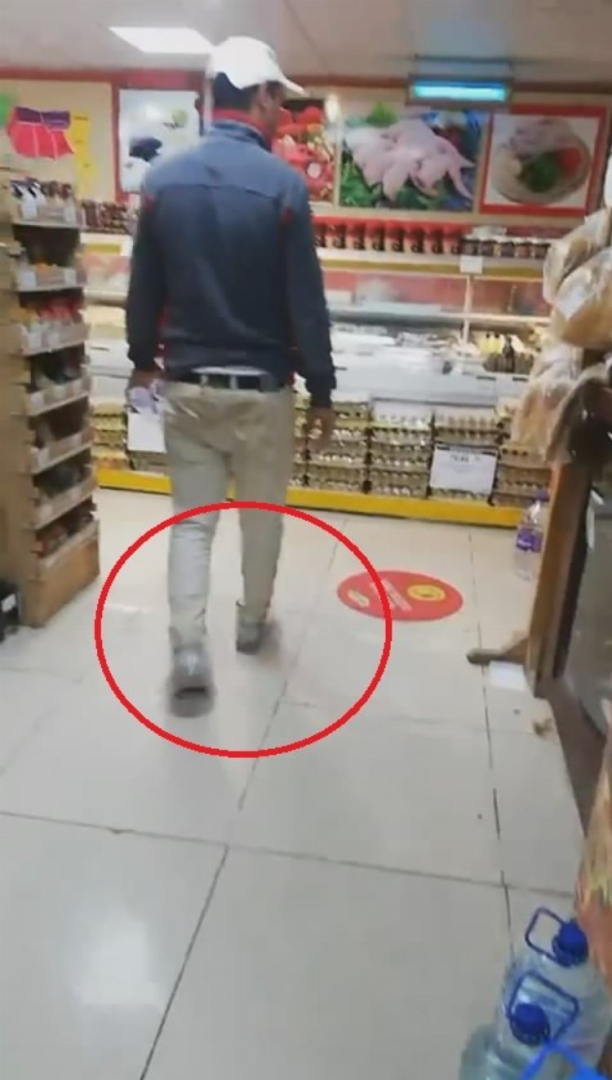 Bursa'da bir inşaatta görevli işçi, su almak için markete gitti. İşçi, market kirlenmesin diye ayaklarına poşet takarak alışverişe başladı. Markette poşet ile dolaşan işçi, su alarak çalıştığı yere geri döndü. İşçinin marketteki anları saniye saniye amatör kamera ile kaydedildi.