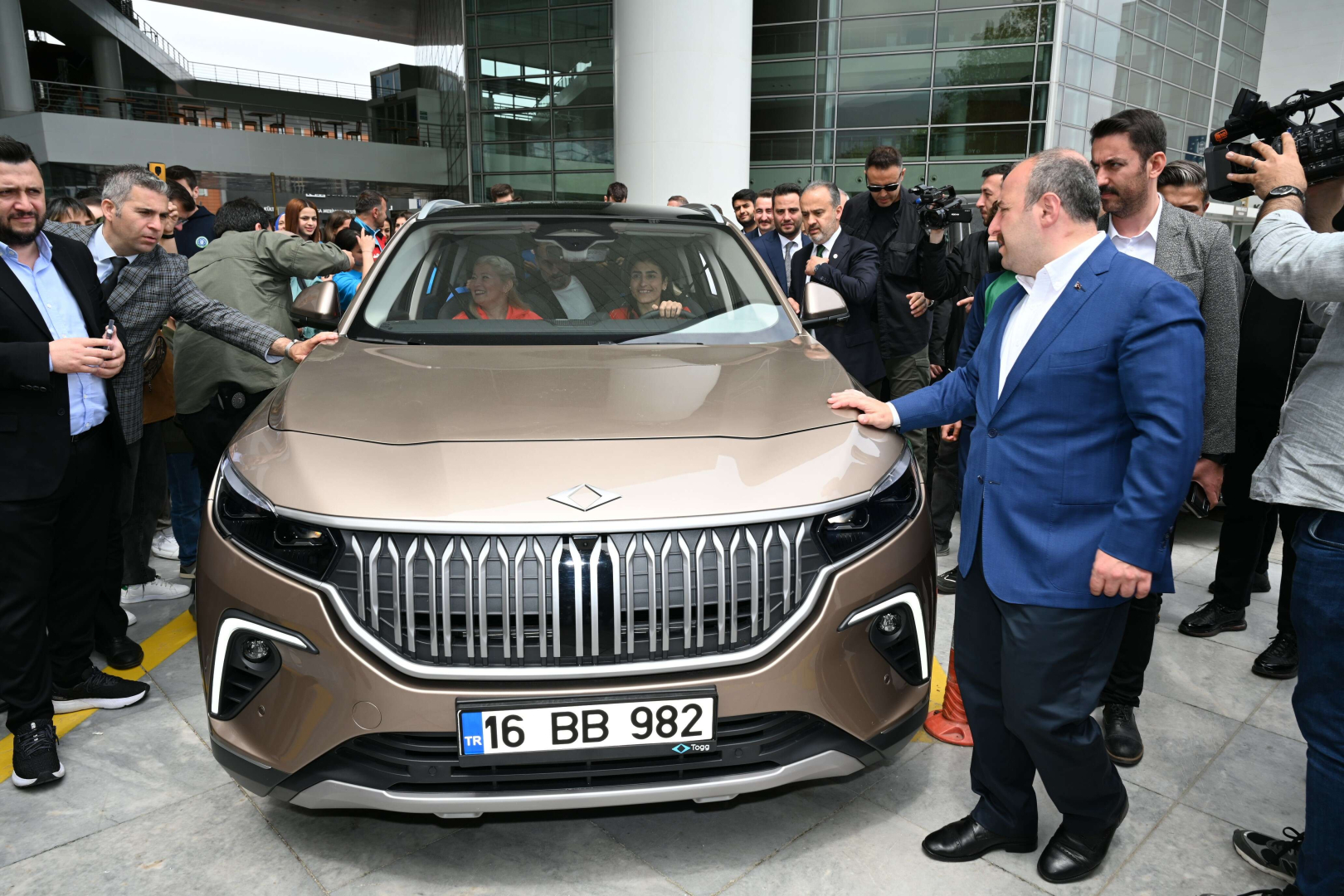 Ödül töreninin ardından Bakan Varank, Büyükşehir Belediye Başkanı Aktaş ve sporcular, arabanın yanına geçti. 'Kapadokya' rengi Togg'un direksiyonuna geçen tekvandocu İlgün, kornaya basa basa yanındaki arkadaşlarıyla tur atma fırsatı buldu.