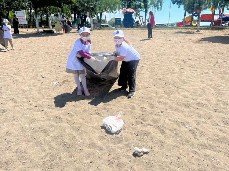 Bursa Büyükşehir Belediyesi'nin ‘Doğa için buluşuyoruz’ temasıyla düzenlediği ‘Çevre Haftası Şenliği’ kapsamında ilkokul öğrencileri tarafından İznik İnciraltı Halk Plajı’nda kıyı temizliği yapıldı.