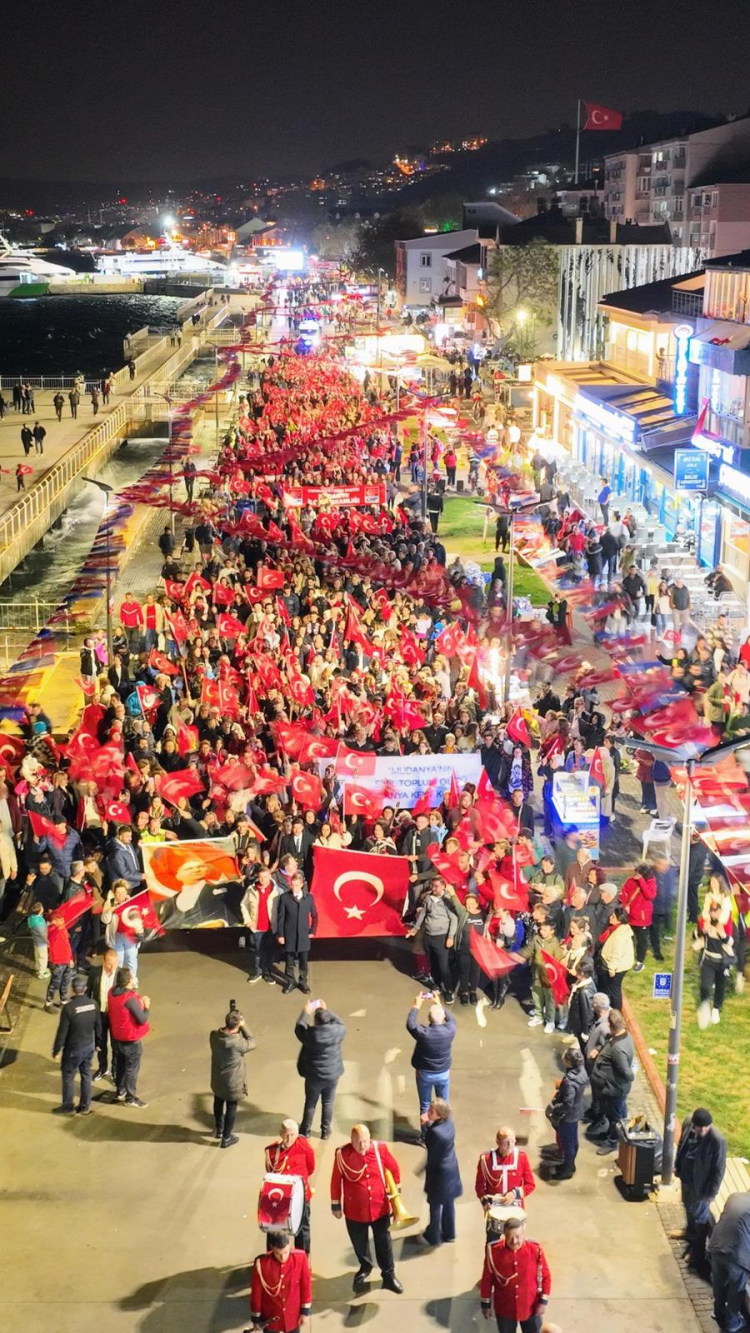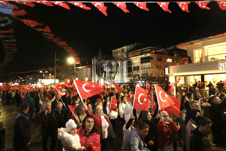 Mudanya'da 29 Ekim Cumhuriyet Bayramı coşkusu, denizde cumhuriyet tekneleri, sokaklarda vatandaşın coşkulu yürüyüşüyle doruğa ulaştı. Gündüz mavi sulara, akşam ise kırmızı beyaz renklere bürünen Mudanya, Cumhuriyet'in 101. yılını büyük bir coşkuyla kutladı.