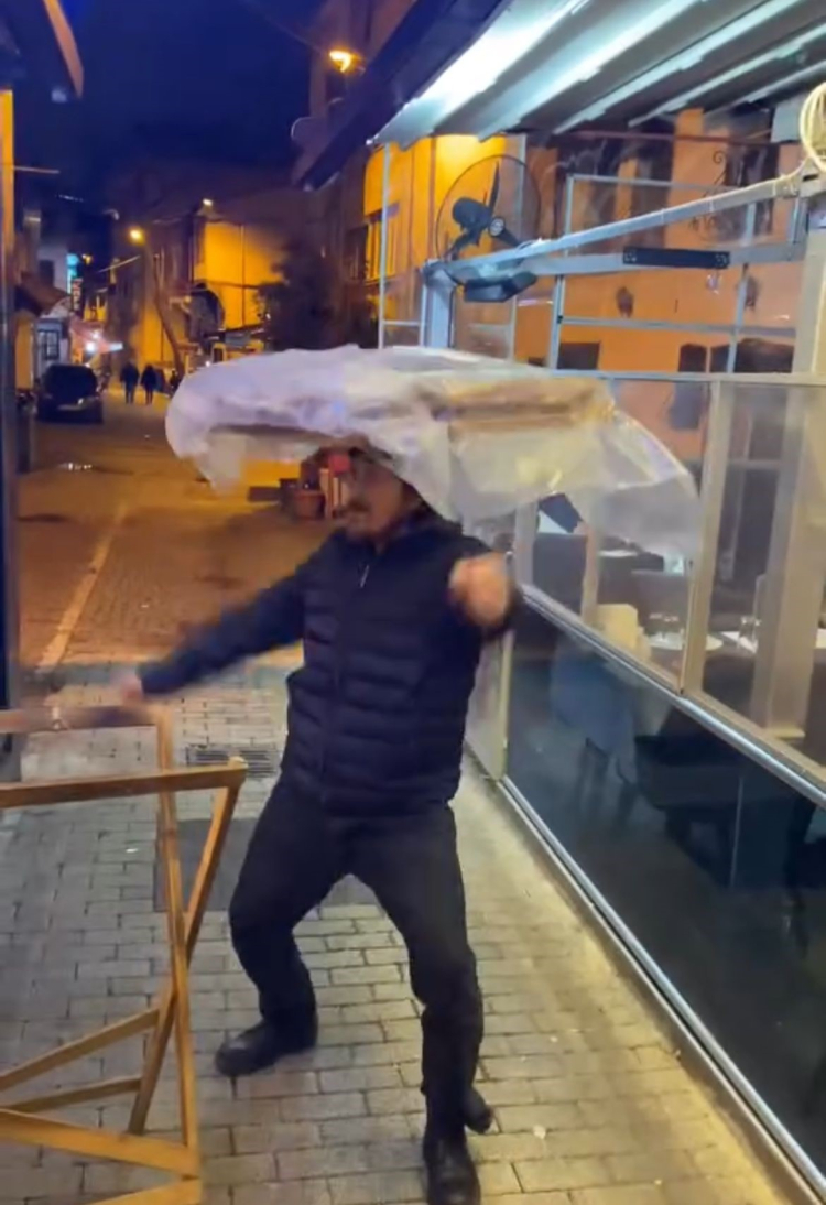Bursa'da bir simitçi eğlence mekanın önünde geçerken, müziğin sesini duyunca başında taşıdığı simitlerle dans etti. Renkli anlar ise kameraya anbean yansıdı.