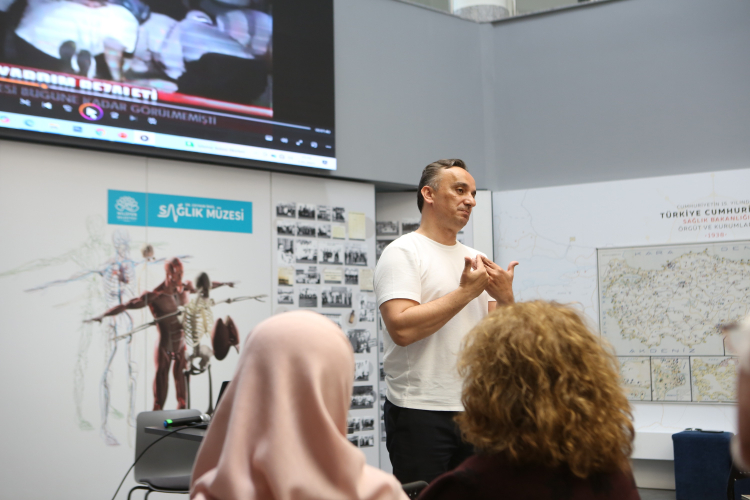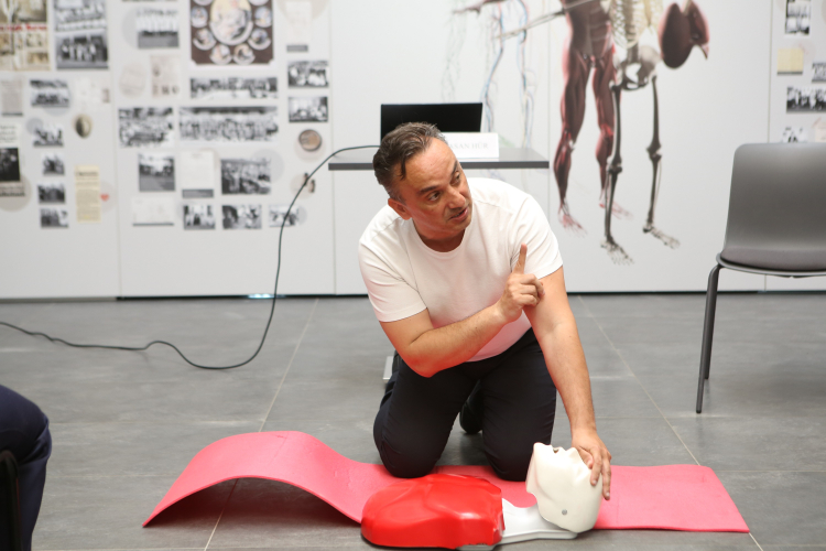 Nilüfer Belediyesi Dr. Ceyhun İrgil Sağlık Müzesi’nde gerçekleşen etkinlikte, İş Güvenliği ve İlk Yardım Uzmanı Hasan Hür, doğru ilk yardım müdahaleleri hakkında bilgi vererek, uygulamalı olarak gösterdi.