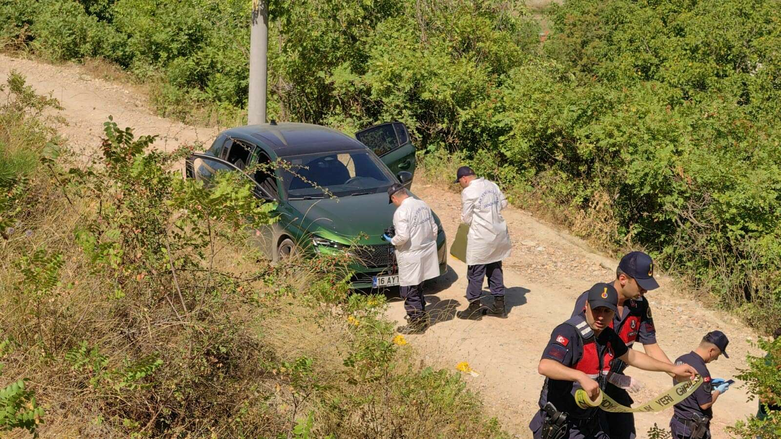 Cinayet zanlısı H.A., yanındaki arkadaşı S.E. ile birlikte geldiği 16 ALU 345 plakalı araçla olay yerinden kaçtı.