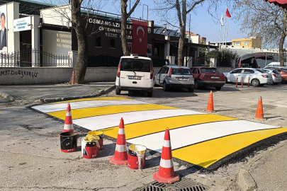 Osmangazi Belediyesi Fen İşleri Müdürlüğü’ne bağlı yol yapım ve onarım birimi ekipleri, ilçedeki yollarda can ve mal güvenliğini artırmak hedefiyle okul önlerinde ve muhtelif cadde ile sokaklarda hız kesici kasis ve şerit çalışması yaptı.