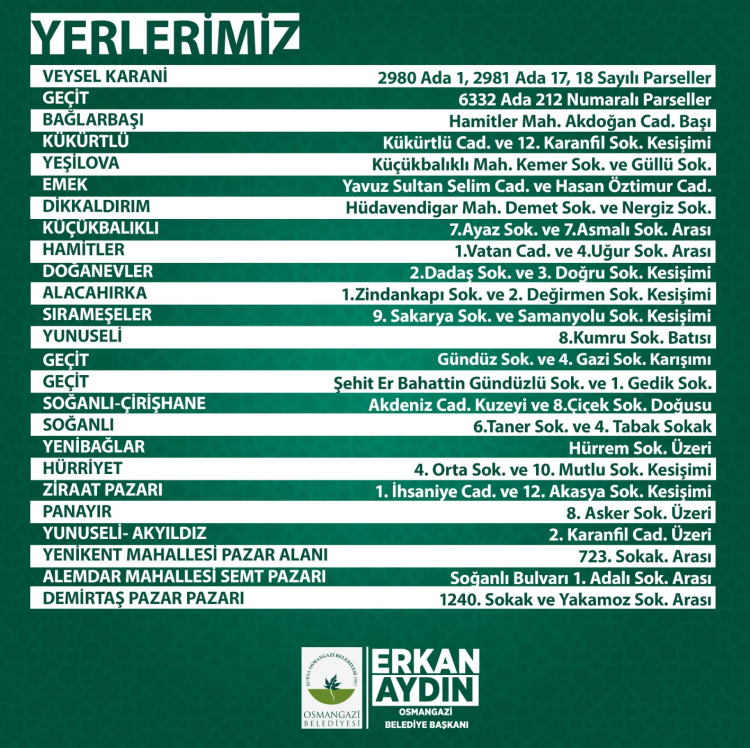 alakalı yaptığı açıklamada, “Osmangazi Belediyesi olarak kurban kesi yerleri olarak