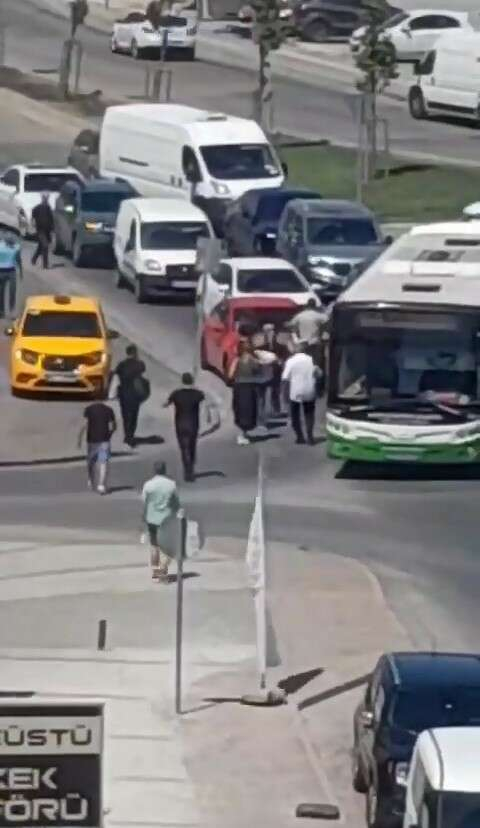 Birbirleriyle yumruk yumruğa giren iki şoförü, vatandaşlar ve otobüsteki yolcular ayırdı. Yaşanan anlar ise saniye saniye vatandaşın cep telefonuna yansıdı.