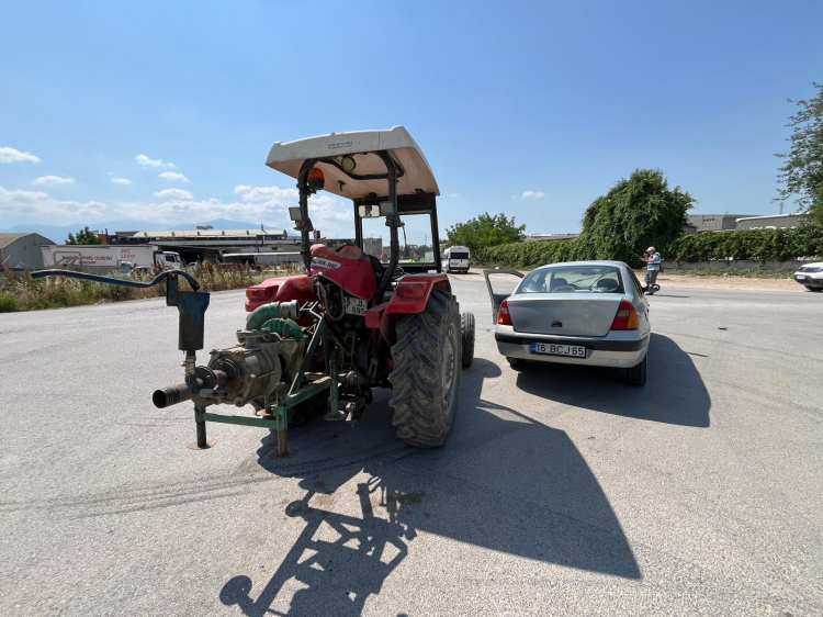 Bursa'nın İnegöl ilçesinde meydana gelen kazada otomobil ile çarpışan traktörün sürücüsü yaralandı.