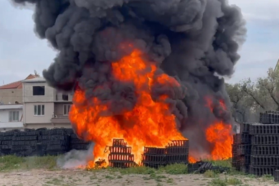 Bursa'nın İznik ilçesinde bir zeytin bahçesinde istif halde bırakılan plastik kasalar alev alev yandı. İlçenin birçok yerinden görülen siyah duman korkuya sebep olurken, yangın itfaiye ekipleri tarafından kısa sürede söndürüldü.