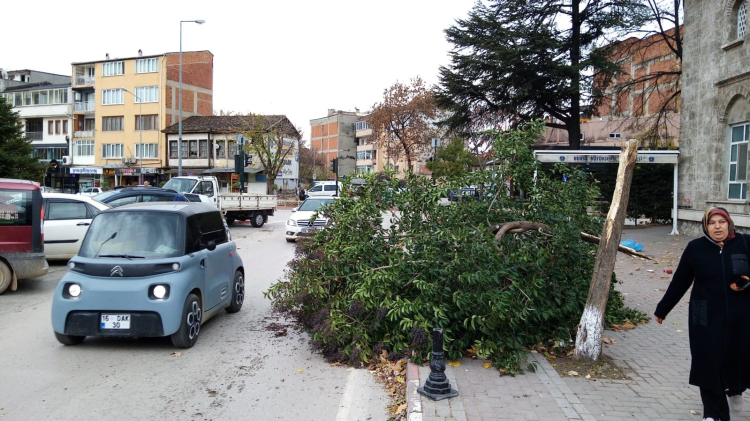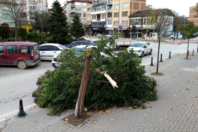 Bursa'nın İnegöl ilçesinde şiddetli lodos sebebiyle ağaç kırılarak devrildi.