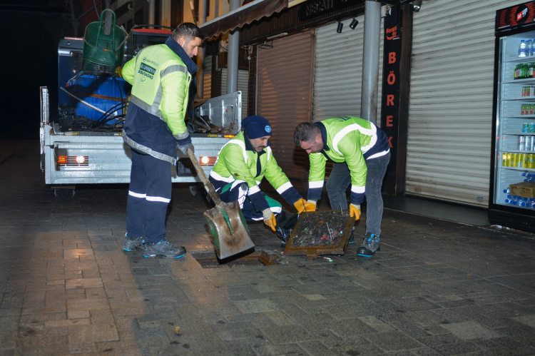 Yaya trafiğinin yoğun olarak yaşandığı Kapalıçarşı bölgesinde gece saatlerinde yoğun mesai harcayan Büyükşehir Belediyesi ekipleri, mazgalları tek tek açarak biriken kâğıt, yaprak, izmarit, kum, taş gibi atık ve yabancı maddeleri topladı. Muhtemel su taşkınlarından dolayı esnafın ve vatandaşların mağduriyet yaşamamasını isteyen Büyükşehir Belediyesi, mazgalların bakım ve kontrollerini titizlikle yaptı. Ekipler, yağışlı havalarda su birikintisi oluşabilecek noktaları da tespit ederek gerekli önlemleri aldı.