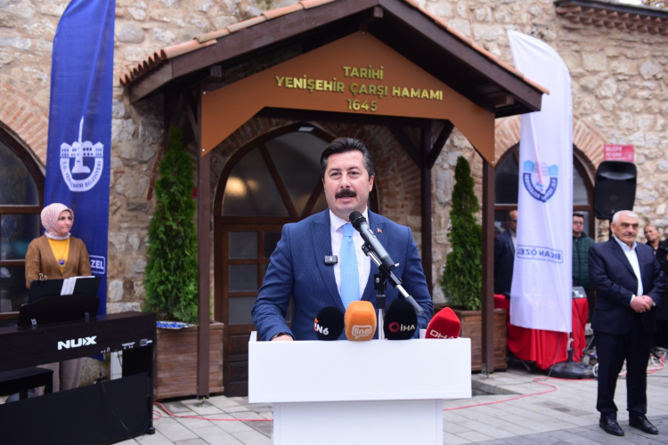 Yenişehir Belediyesi'nin girişimleriyle kısa bir süre içerisinde restorasyonu tamamlanan Tarihi Yenişehir Çarşı Hamamı coşkulu bir törenle açıldı. Törende konuşan Yenişehir Belediye Başkanı Ercan Özel, “Bu şehirde yönetici olmak, aynı zamanda tarihi bir sorumluluk taşıyor. Tarihi Yenişehir Çarşı Hamamı'nı açıyor olmamız, işte bu sorumluluğun bir sonucudur” dedi.