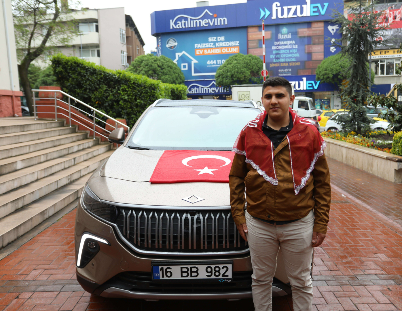 Bakan Varank’ın talimatıyla Kapadokya renkli Togg, İnegöl’e geldi. Kadir Bacak üzerinde Türk Bayrağı olan T10X’in direksiyonuna asker şalı ile oturdu. İnegöl turu atan Kadir Bacak’a asker gencin akrabaları ve arkadaşları da eşlik etti.