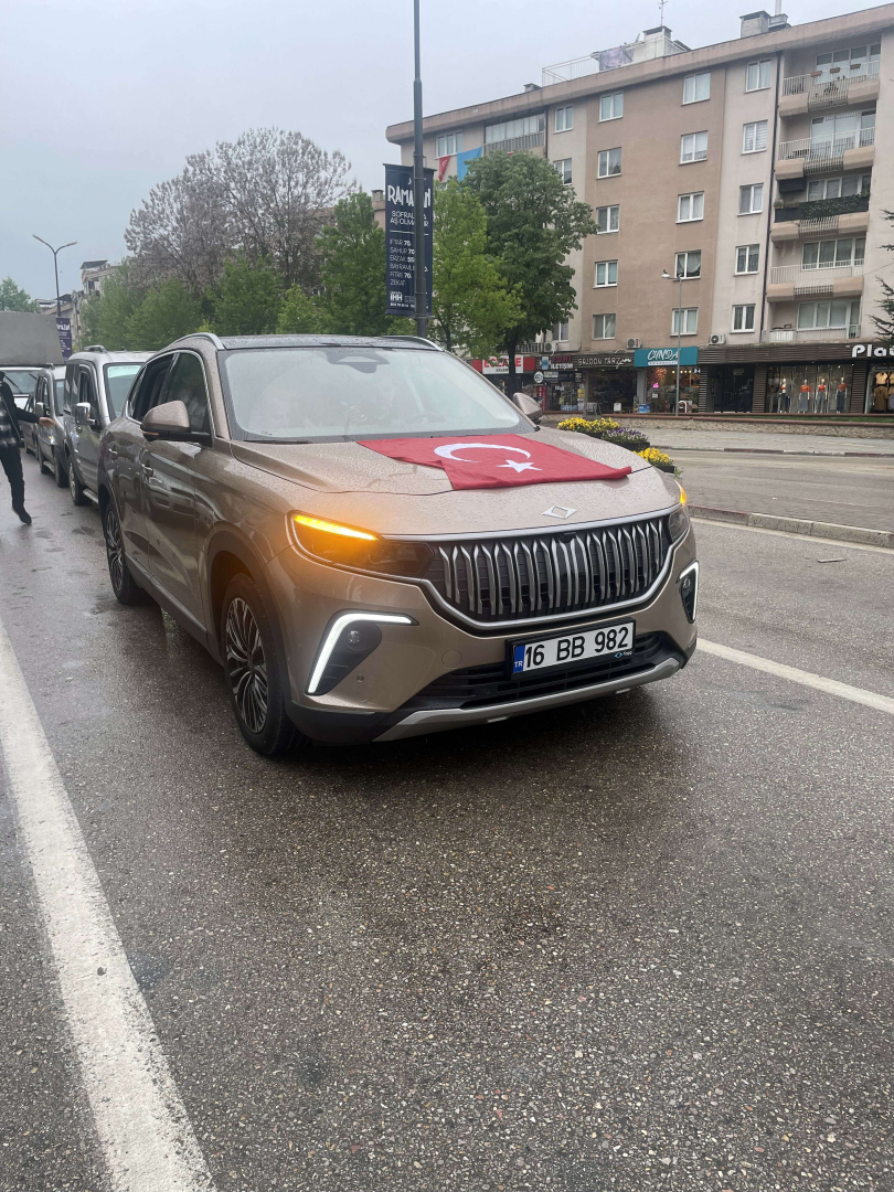 İnegöl Belediyesi önüne de gelen T10X, vatandaşların da yoğun ilgisiyle karşılandı. Tokat’ta vatani görevini yapacak Kadir Bacak, “Bursa Gençlik Merkezi açılışında bakanımızdan Togg’u talep etmiştik. Bakanımız da bizi kırmadı.” dedi. Bacak, desteği ve katkıları için İnegöl Belediye Başkanı Alper Taban’a da teşekkür etti.