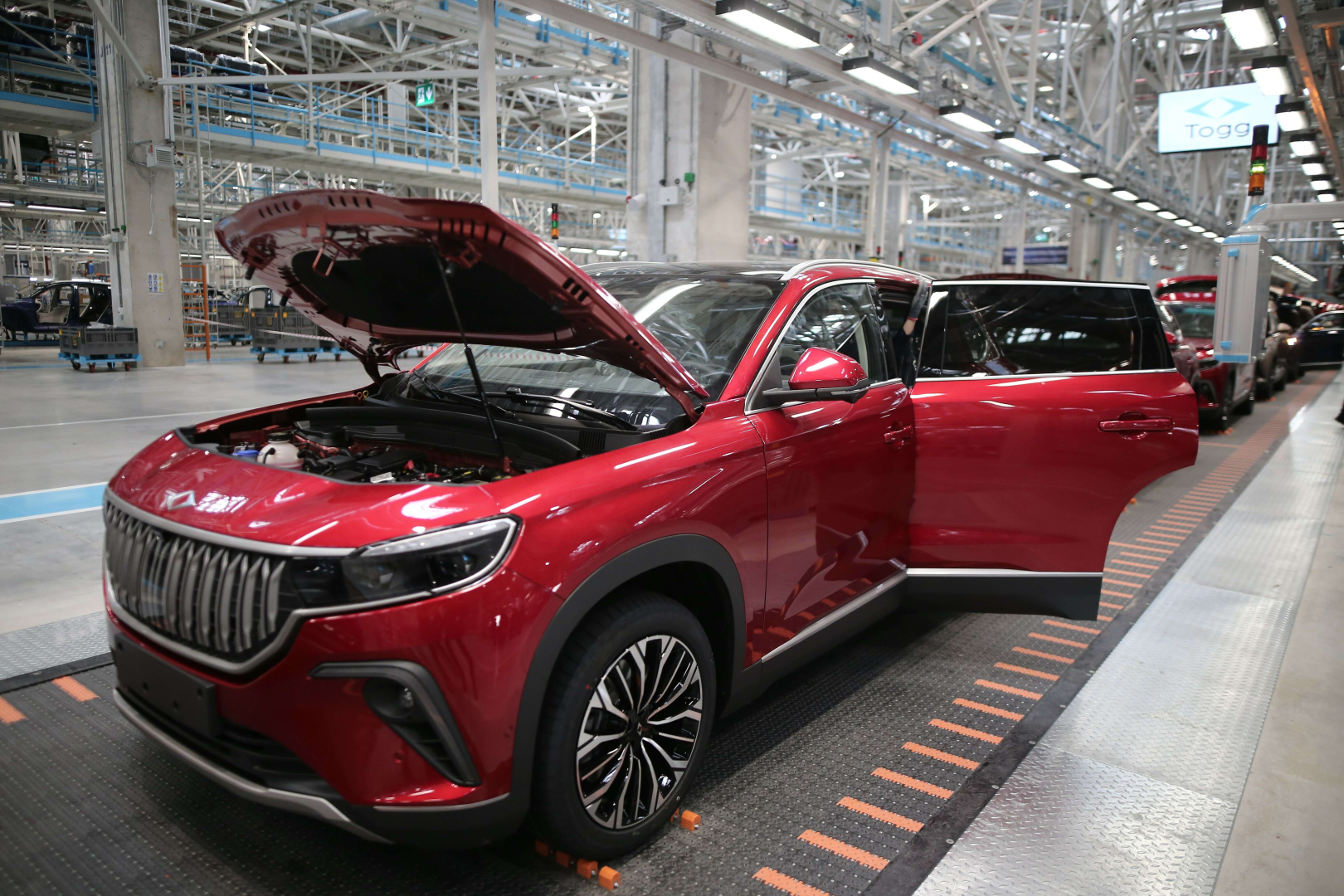 Bursa Gemlik'te bulunan tesislerde basın mensuplarını ağırlayan Togg Ceo'su Mehmet Gürcan Karakaş ve ekibi fabrikadaki üretimi yerinde gösterdi. Robotlarla birleştirilen gövde, Avrupa'nın en temiz boyahanesinde boyandıktan sonra en detayına kadar kontrolleri yapılarak sahiplerine teslim ediliyor.
