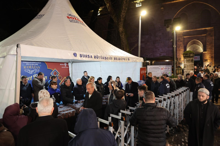 Bursa Büyükşehir Belediye Başkanı Mustafa Bozbey, eşi Seden Bozbey ile birlikte Ramazan ayının başlangıcında Ulu Cami'de kılınan ilk teravih namazının ardından, Ramazan'ın hayırlı ve bereketli olmasını dileyerek vatandaşlara tatlı ikramında bulundu.