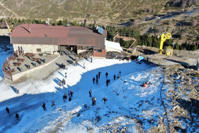 Karkaya kayak pistine kurulan makineyle suni kar yağdırıldığını duyan yerli ve yabancı turistler telesiyejle bölgeye akın etti. Suni karların üzerinde kayan turistler bol bol kar topu oynayıp fotoğraf çektirdi.