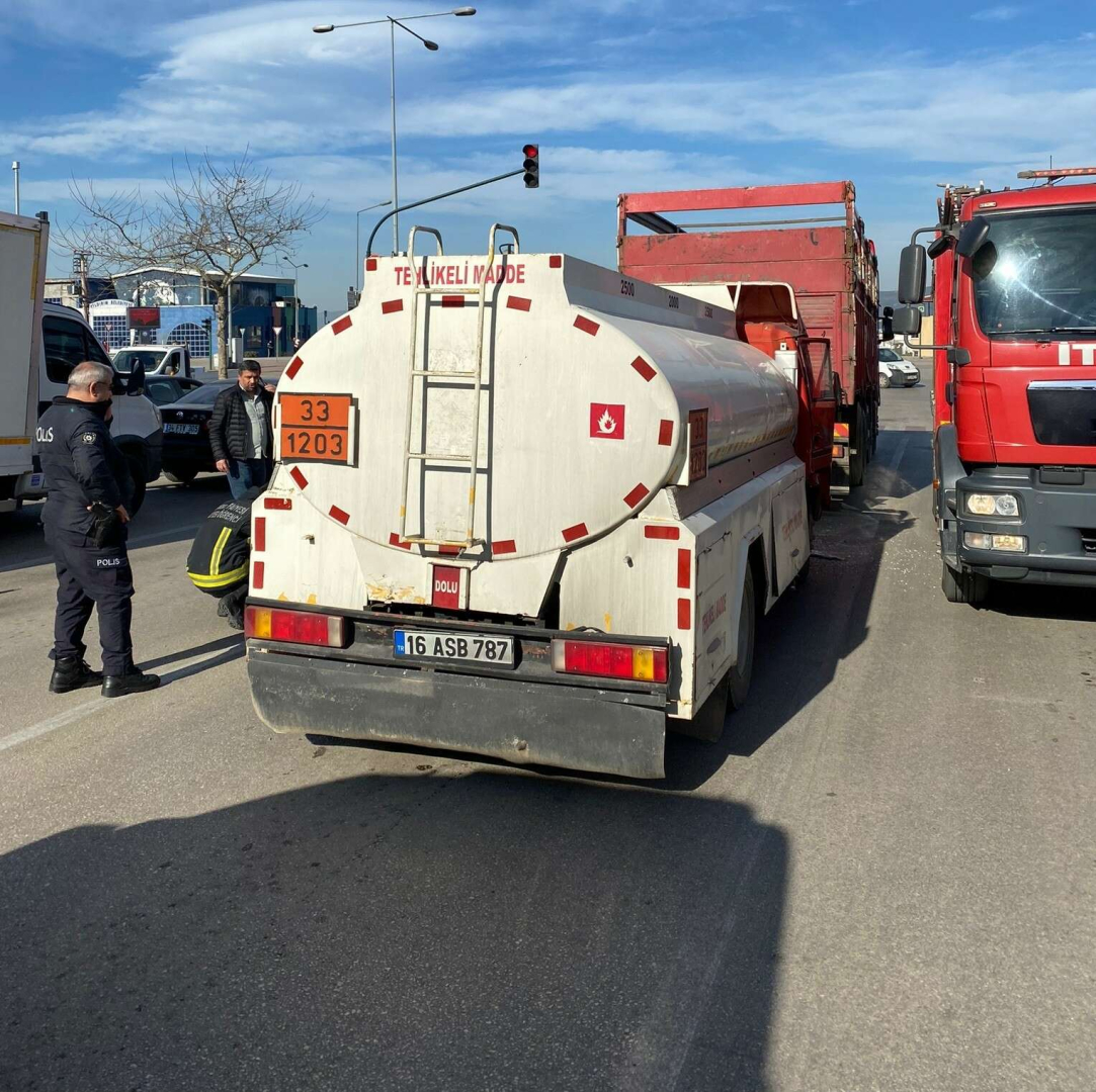 Kaza, saat 13.00 sıralarında merkez Yıldırım ilçesi Otosansit Kavşağı'nda meydana geldi. Edinilen bilgiye göre, E.K. idaresindeki 16 ASB 787 plakalı yakıt tankeri, O.B. idaresindeki 61 AES 966 plakalı kamyona arkadan dolayı çarptı.